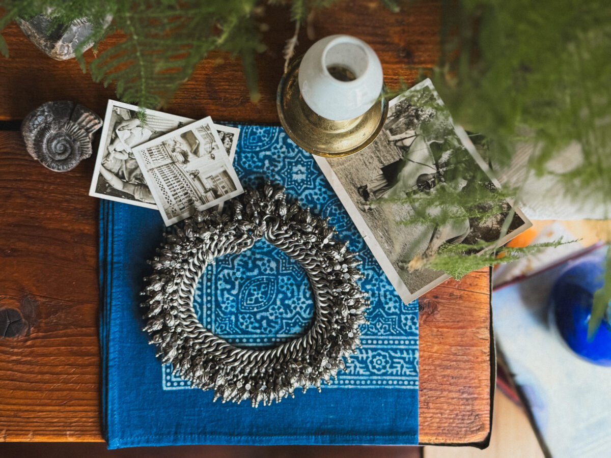 Sitting sizeably, at 14 inches in length and 12 inches in breadth, this dark wood box could easily be mistaken for an ornately carved low side table. However, come closer and the magic inside is revealed. The vanity cum jewellery box from the early 1900s, sits pristinely preserved in the hands of its third owner.