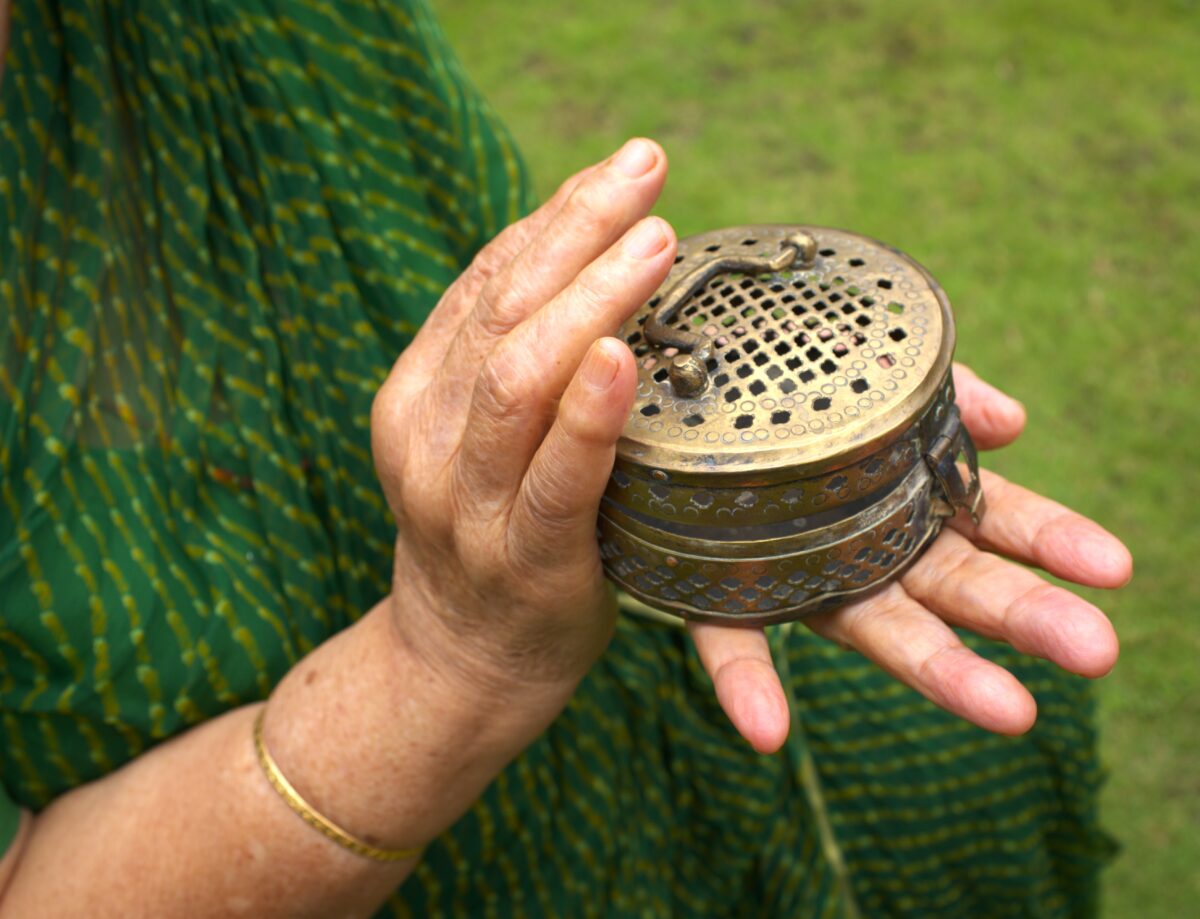 Sitting sizeably, at 14 inches in length and 12 inches in breadth, this dark wood box could easily be mistaken for an ornately carved low side table. However, come closer and the magic inside is revealed. The vanity cum jewellery box from the early 1900s, sits pristinely preserved in the hands of its third owner.