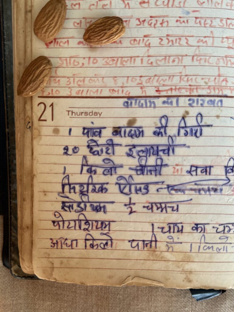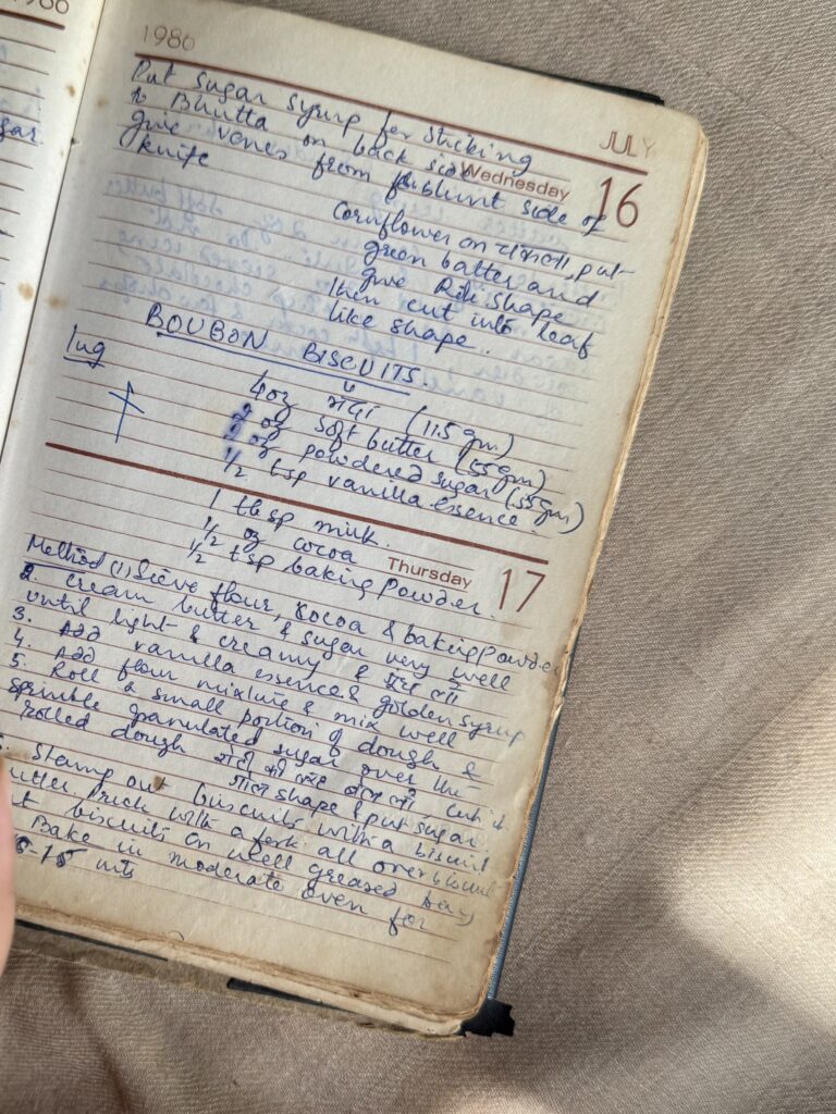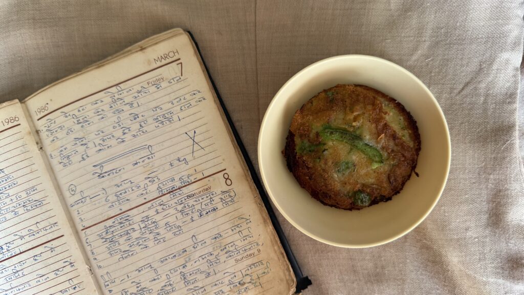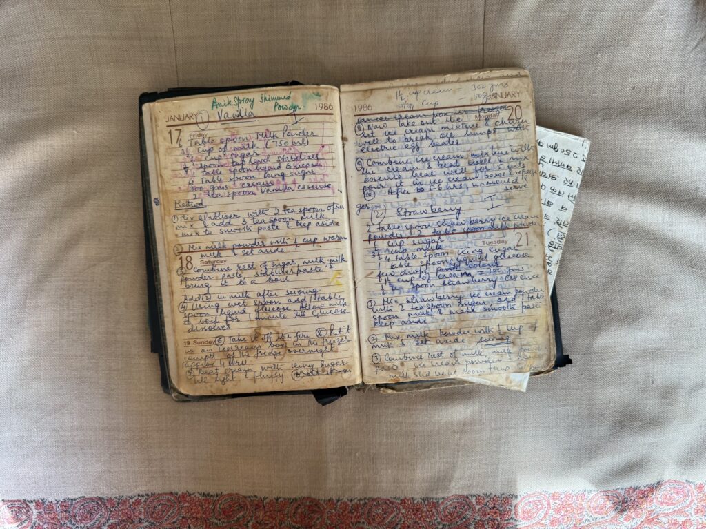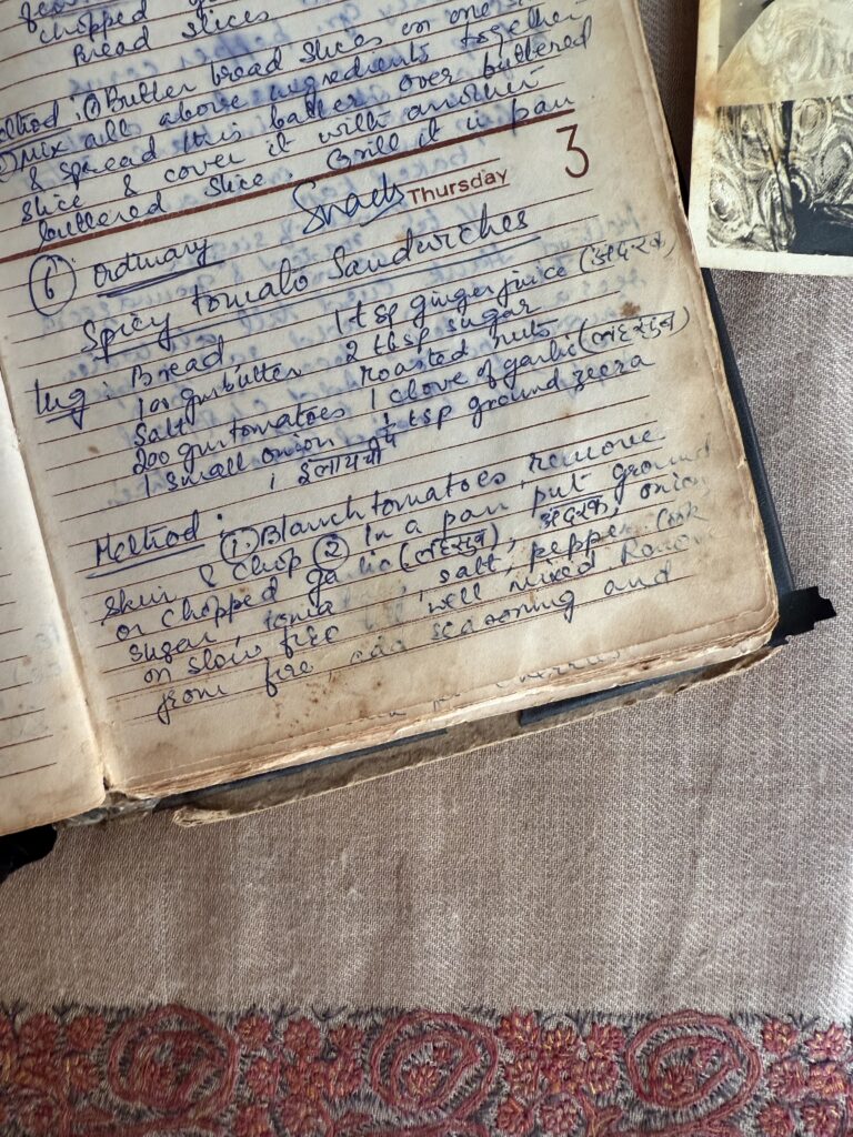 A cookbook that dates back to the year 1986 is filled with my maternal grandmother, my naani’s handwritten recipes. I learnt about it only last year, though, because my mother was aware of my interest in writing about old objects and materials. This diary was my grandmother’s companion throughout her life, but after she died in 2023, it became dearer to my mother. Now, in the age of ordering in and eating out, this diary has found new relevance amongst my mother and her sisters once again.