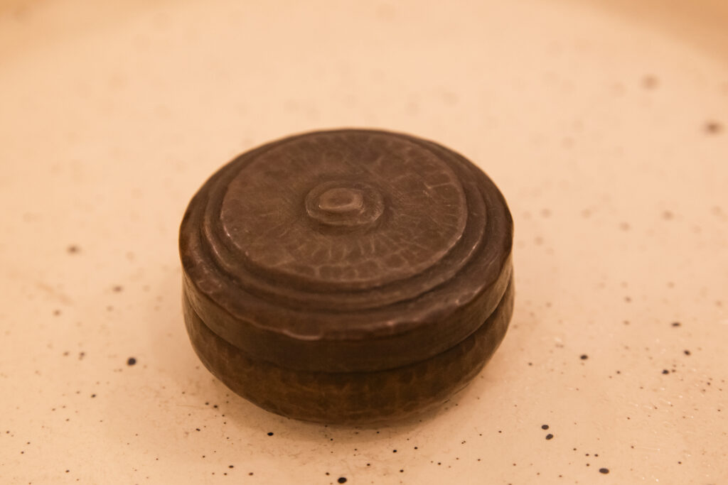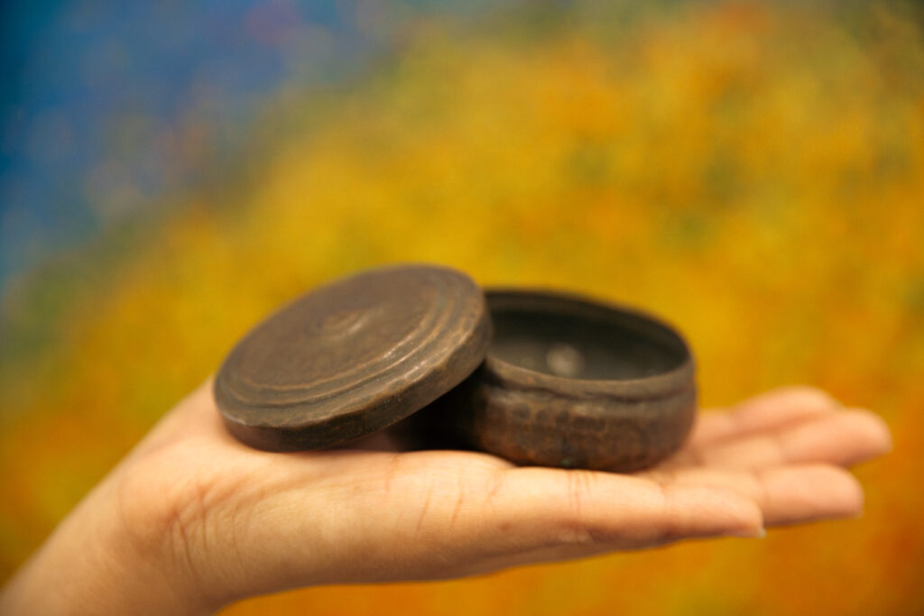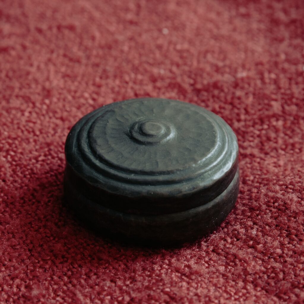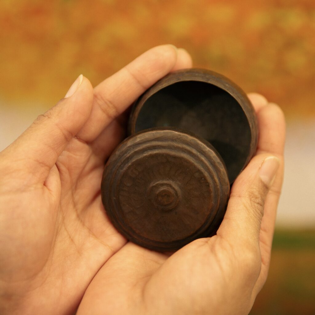 The second time dadi moved houses was a year or so later. Of this forced migration, she would say again and again: all she had were the clothes she wore that day, and in her hands was the dabbi. The grandmother who bequeathed it to her was left behind, already dead. Both houses, the one she was born in and the one she first took the dabbi to, were now suddenly in another country that she was certain she would return to, but never could. This palm-of-the-hand object became the story of an origin, houses she could only narrate into being, portals to the portrait of a grandmother of whom she had no photograph.