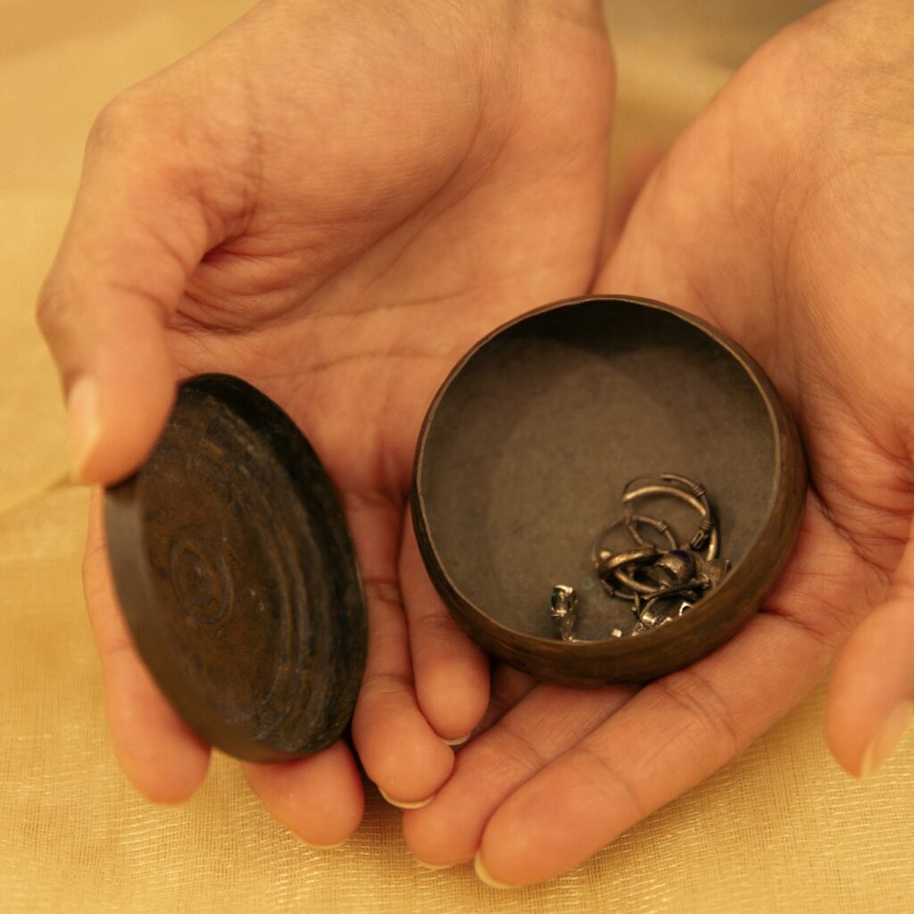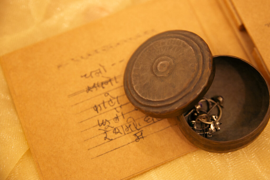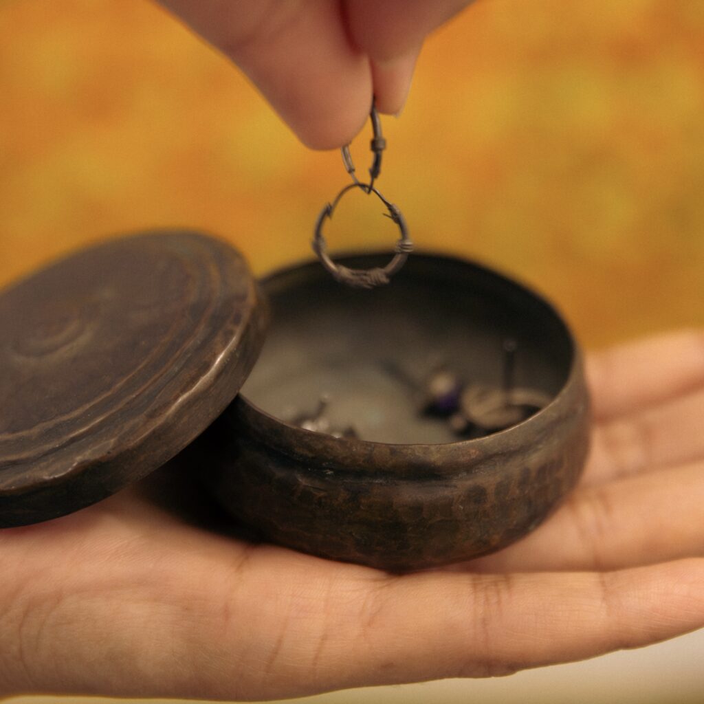 The dabbi, not much to look at to begin with, was never even polished. Dadi asked about it from time to time, just to check if it was doing okay. I turned eleven, twelve, then thirteen and started checking on the dabbi myself from time to time. It was kept in a tin box that probably contained chocolate covered almonds at a point in time. Next to the dabbi were other revered but not so expensive objects belonging to my mother – my untearful nani’s baby jhunjhuna gift, silver bangles that didn’t fit anyone anymore, expired school ID cards.
