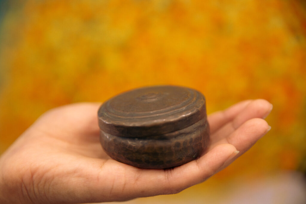 There is this wonderful and terrible thing about objects: they can often outlive the person they are bequeathed to. Pammi Mandhwani, my paternal grandmother outlasted her paternal grandmother, who gave her a tiny box, a dabbi the size of her ten-year-old palm. My dadi was about thirteen (we can only estimate) when her sister and she got married to two brothers and moved away from Sukkar for the very first time. The brass dabbi was one of the many objects dadi and her sister brought along to their marital house in Larkana.