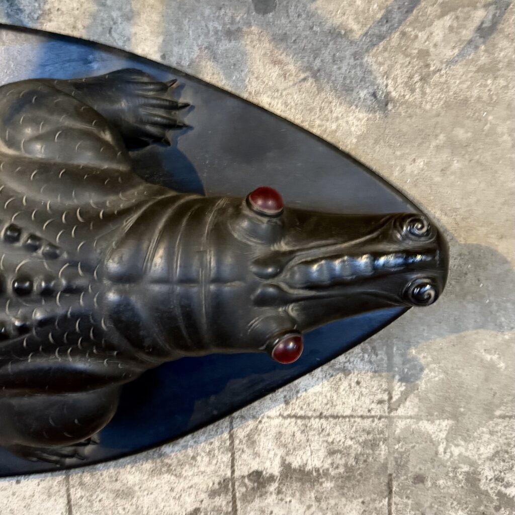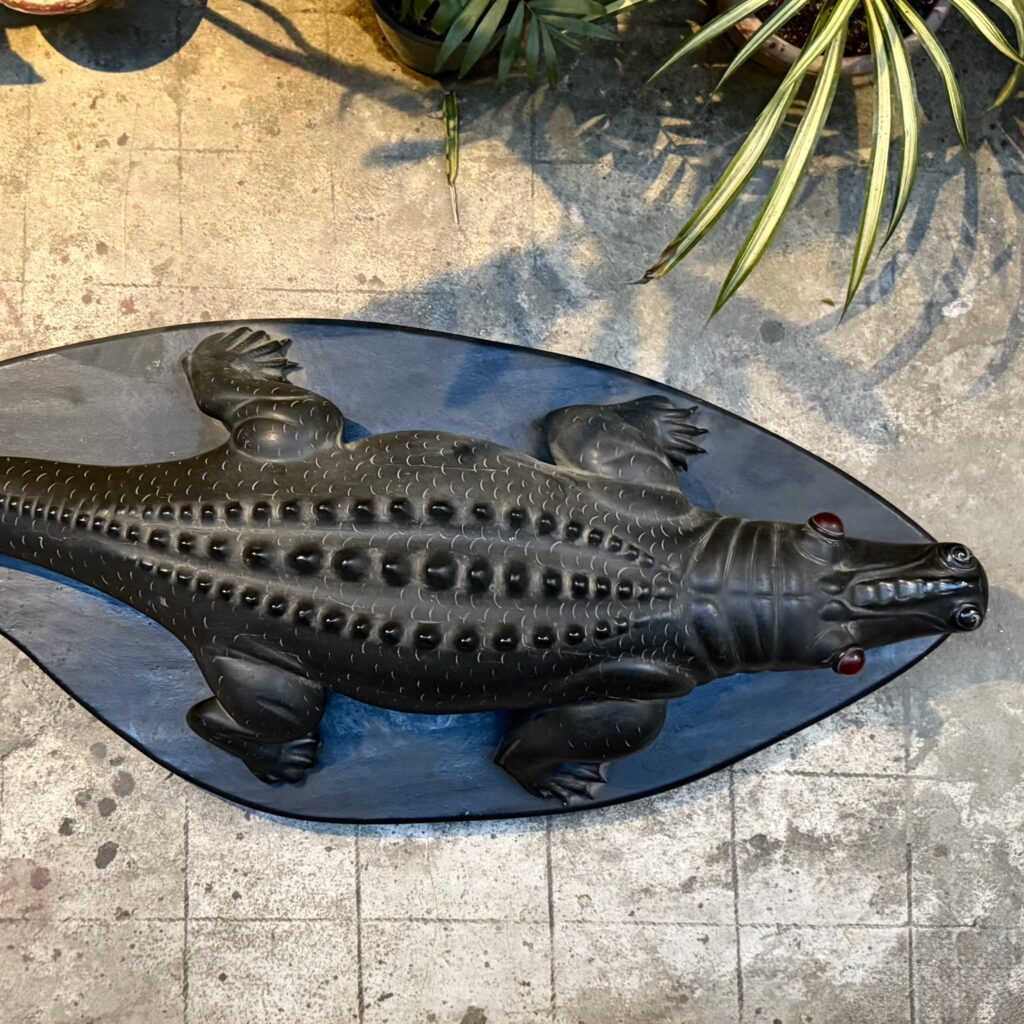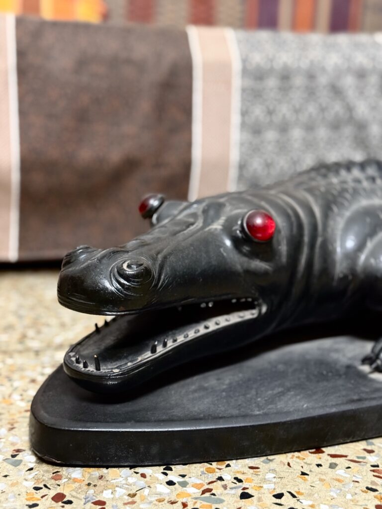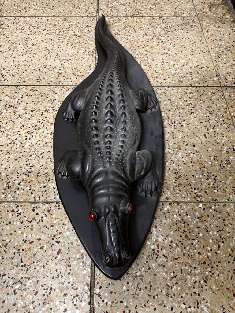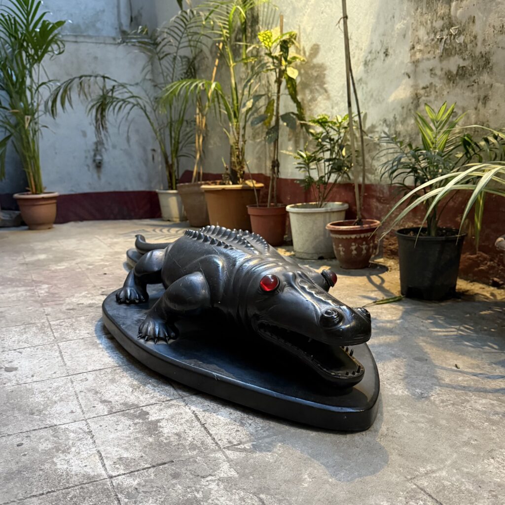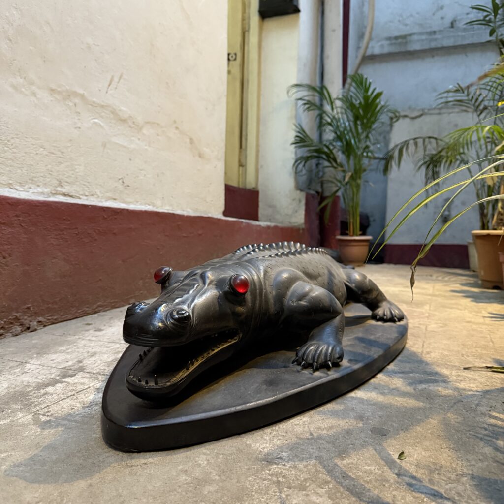 The whole story may always evade us, owing to the lack of documentation regarding its passage to Bengal. No witness exists, not even the crocodile itself, because it was never given the gift of sight. Perhaps all we can do is imagine that the wooden crocodile once had eyes, and to write of its journey.