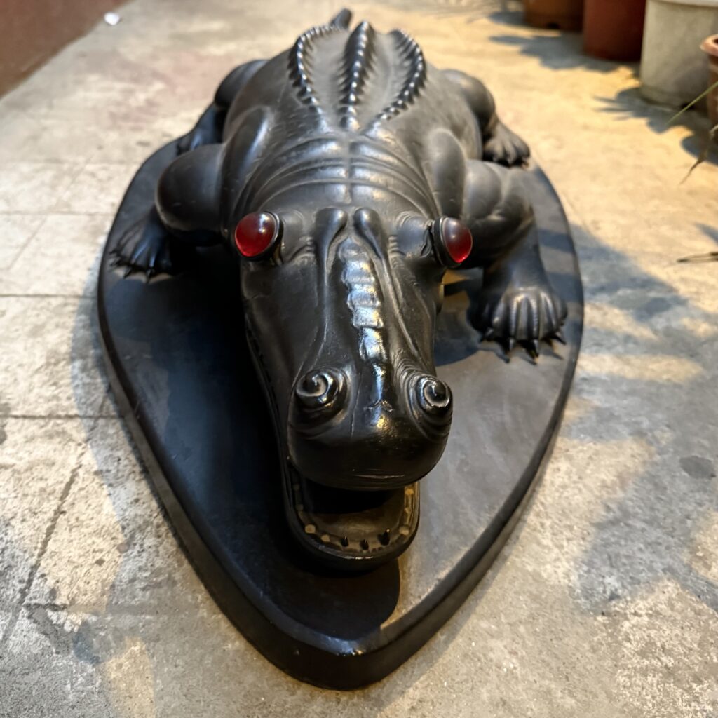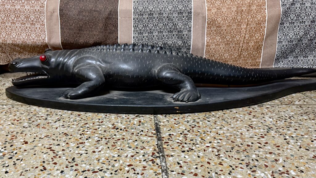 Perhaps the sculpture allowed him to hold on to something of Burma in a more physical way. Crocodiles appear often in Burmese folklore and river life, associated with power and danger. They belong strongly to the landscape, but did they ever appear in his writing from the region? I find myself wondering whether somewhere in Sarat Chandra Chatterjee’s Burma-related work, there is even a passing reference? If one were to search the archive closely, would a crocodile appear in the literary landscape, or does the sculpture remain outside the text, lying in wait on my mama’s shelf?