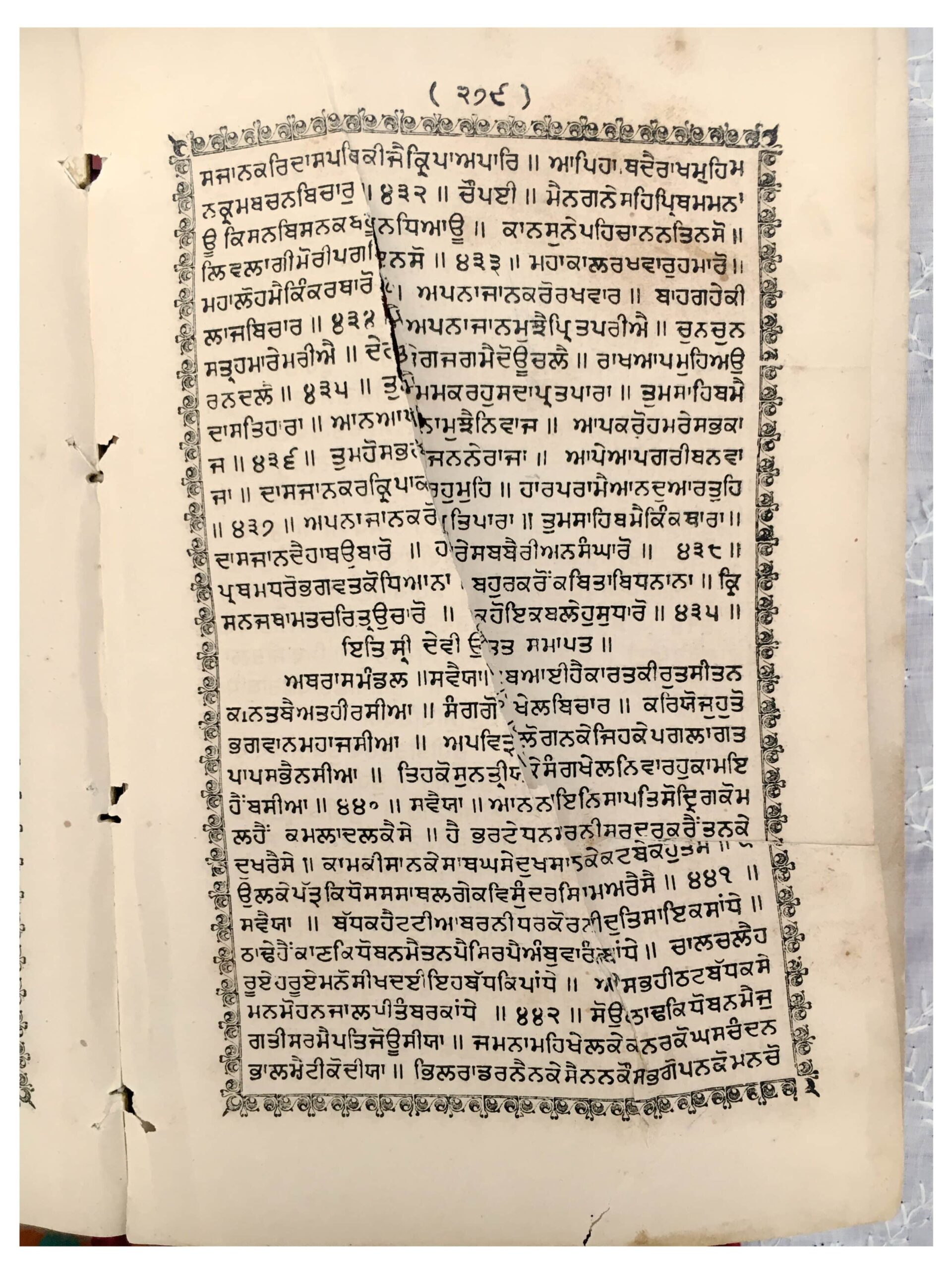 This copy of the granth has 1286 pages in all, although the original granth is said to have 1428 pages. It could be that a few of the texts are missing or not compiled in this copy, but I consider this copy to hold a lot of historical significance and is evidence that even before we owned it, it was extensively read. Our family considers it a blessing of the great Guru and feels it a responsibility to protect and preserve it as long as we can do.