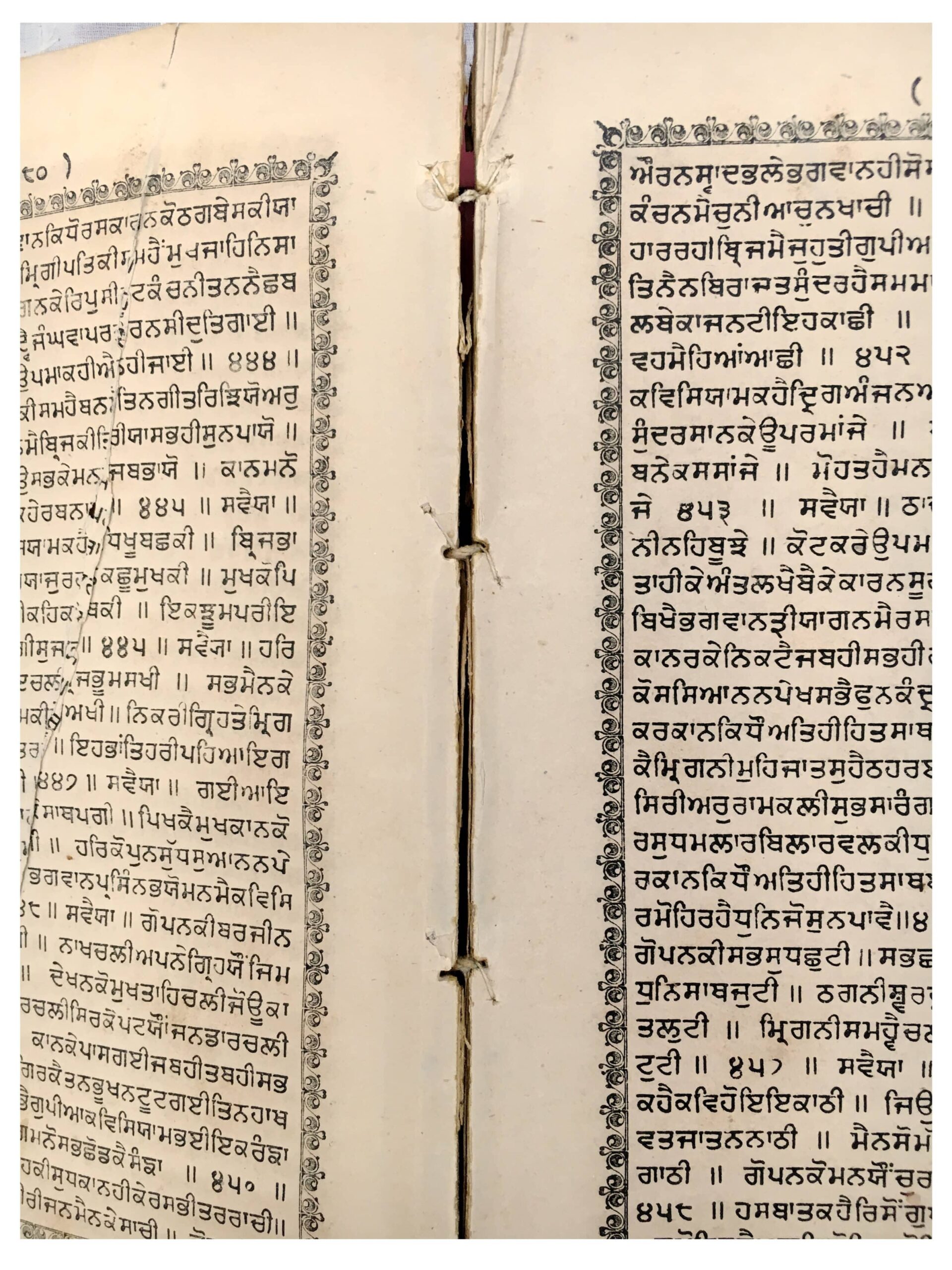 The ‘treasure’ we found was brough home. When we carefully opened the granth, its first page mentioned its description in Gurmukhi as follows: ‘Dasam Patshahi Ka Guru Granth Sahib Jo Kattak Sammat 1952 Anglo Sanskrit Chhaape Khaane Lahore Bazaar Anarkali Vich Chhap Kar Pragat Hua’ (The Granth of the Tenth Master, printed in the month of Kattak in the year 1952 Sammat, at Anglo-Sanskrit Press located in Lahore’s Anarkali Bazaar).
