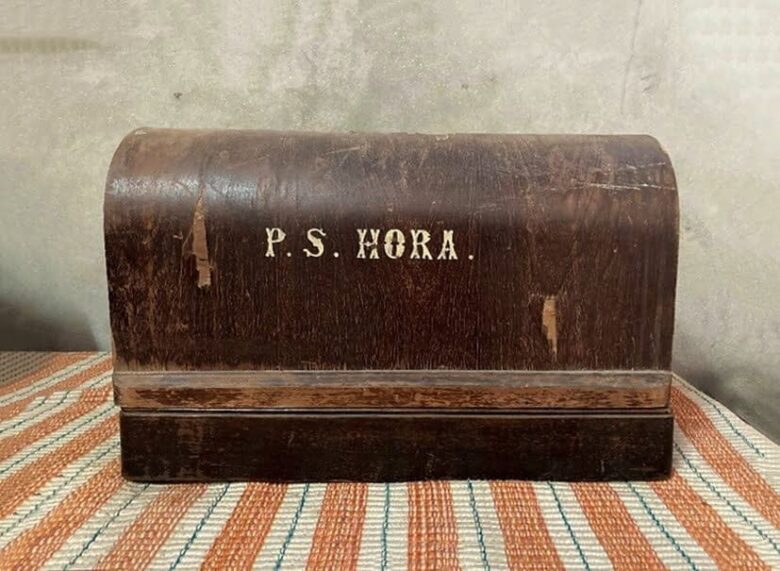In those days, included in every dowry was a sewing machine, and this belonged to my great-grandmother. The sewing machine is a Singer, with gold embossed work and dates back to the early 1940s. Portable in nature, a standard 14 inches in size, it has a wooden cover with my great-grandfather’s initials P.S Hora (Prem Singh Hora) painted on it.