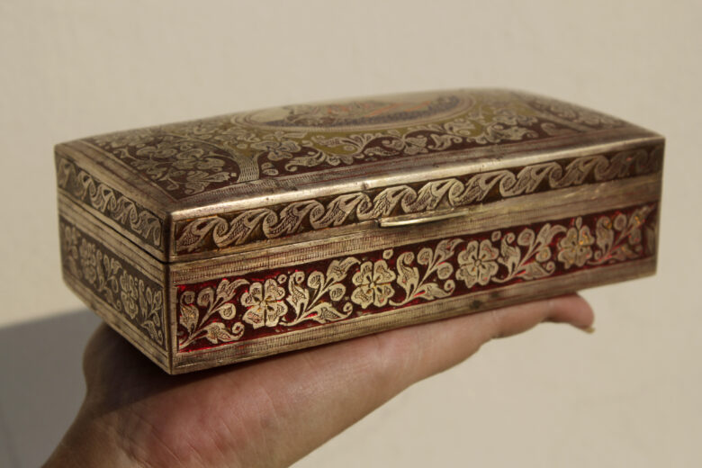 My grandmother gauged that this box was bought somewhere around the year 1940 in Benaras. My great-grandma used the box until her death and then, her son [and my maternal grandfather], gifted the box to his wife, my grandmother, to use it as her jewellery box.