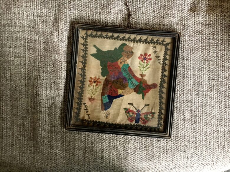 Rajkumari Devi had embroidered this map for a school competition in the year 1948 when she was only 8 years old. Her school in Amhara, Bihar was visited by some British officials, who awarded her 10 annas for the extraordinary embroidery she had done, despite her young age.