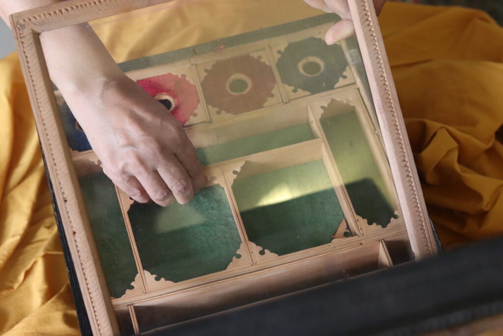 If there is a possibility that the box was indeed handmade in Visakhapatnam, how did it find its way to the upper reaches of the Himalayas? What routes, relationships, and networks carried such an object of luxury across to the remote landscape? It is clear the box was made for a woman of dignified means and its careful preservation, renders it priceless. At present, the box is approximately 113 years old and has begun to show subtle signs of ageing. The key to the lock is missing, the velvet lining is wearing away, and a few edges of the compartments are broken. Like an ageing beauty, the vanity box now asks to be handled with greater care; it has travelled far and wide.The journey has been long – what started with young Parvati in Almora, a stop in Nainital, travelling across India with Vandana finally ended in Dehradun. A granddaughter’s safe hands have kept her story alive and we can’t wait to hear what chapter the box will hold next.